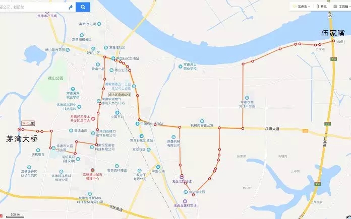 途經(jīng)站點(diǎn):伍家嘴→金海鋼構(gòu)→三合垸防汛抗旱指揮部→千噸級碼頭→常德表面材料產(chǎn)業(yè)園→力元新村→烏潭崗村→楓樹崗村安置小區(qū)→湖南華電西門→雙崗社區(qū)21組→常德水域救援大隊(緝毒刑偵大隊)→茶葉崗→宜達(dá)物流→紅星美凱龍→昊天集團(tuán)→惠生國際→樟木橋派出所→五一村→澄冬一汽大眾4S店→桃花山→五一村安置小區(qū)→德山生活灣→德山工商銀行→二醫(yī)院→恒安集團(tuán)→德山經(jīng)開區(qū)管委會→常德中小企業(yè)創(chuàng)業(yè)基地→廣積米業(yè)→崇德中學(xué)→茅灣大橋(原線返回)