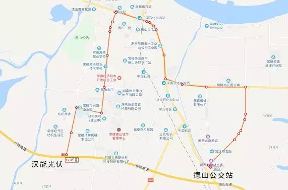 途經(jīng)站點:伍家嘴→金海鋼構(gòu)→三合垸防汛抗旱指揮部→千噸級碼頭→常德表面材料產(chǎn)業(yè)園→力元新村→烏潭崗村→楓樹崗村安置小區(qū)→湖南華電西門→雙崗社區(qū)21組→常德水域救援大隊(緝毒刑偵大隊)→茶葉崗→宜達物流→紅星美凱龍→昊天集團→惠生國際→樟木橋派出所→五一村→澄冬一汽大眾4S店→桃花山→五一村安置小區(qū)→德山生活灣→德山工商銀行→二醫(yī)院→恒安集團→德山經(jīng)開區(qū)管委會→常德中小企業(yè)創(chuàng)業(yè)基地→廣積米業(yè)→崇德中學→茅灣大橋(原線返回)