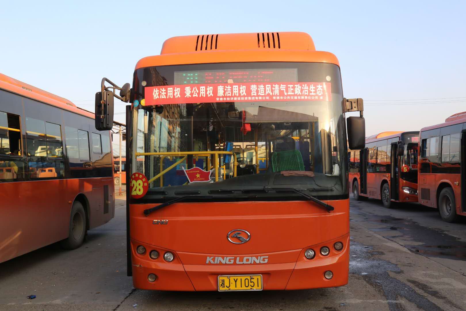 “兩會(huì)”召開(kāi)前夕,市經(jīng)投集團(tuán)下屬公交公司積極開(kāi)展“廉政文化進(jìn)車廂”活動(dòng),重點(diǎn)打造了一條廉政文化專線28路線,該線所有公交車車廂統(tǒng)一“換裝”,每臺(tái)車廂醒目位置張貼了6張圖文并茂的廉政文化海報(bào),車載電視循環(huán)播放黨紀(jì)黨規(guī)、典型案例、廉政動(dòng)漫等內(nèi)容。28路車輛日均發(fā)班105趟,日客流量近萬(wàn)人次,途徑武陵大道、朗州路、人民路等城市主要干道,沿線黨政機(jī)關(guān)、醫(yī)院、學(xué)校多,在全市53條公交線路中最具代表性,傳播范圍廣,宣傳效果好。