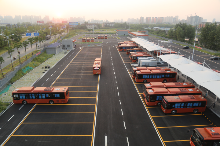 武陵公交站位于柳葉大道西延線以南,合興路以東,總占地45畝,建筑面積5342平方米,設(shè)置有綜合樓、維修車間、洗車間等功能性場所。站內(nèi)共建設(shè)252個停車位,配備充電樁位54個,可一站式實現(xiàn)車輛停放、中轉(zhuǎn)、充電、維修保養(yǎng)及辦公調(diào)度等功能。