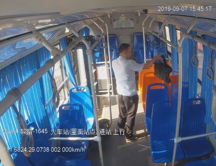 圖為52路駕駛員胡杰峰拾金不昧監(jiān)控截圖