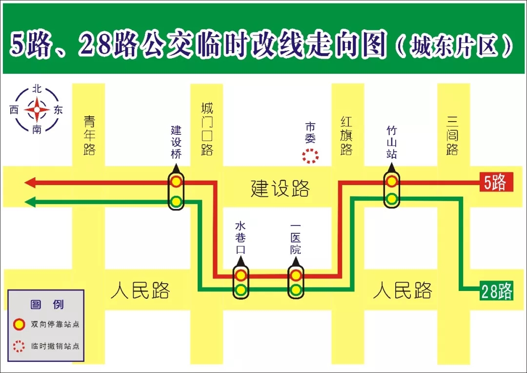 根據(jù)常公交通[2019]3號(hào)《常德市公安局交通警察支隊(duì)關(guān)于在市城區(qū)建設(shè)路(體育路至紅旗路段)施工期間采取交通限制措施的通告》文件精神,2019年8月26日至2020年2月28日,我市建設(shè)路(體育路—紅旗路段)、南碈路(建設(shè)路—人民路段)進(jìn)行全封閉施工。期間,我公司將對(duì)途徑上述路段的5路、15路、28路公交線進(jìn)行臨時(shí)調(diào)整,具體方案如下: