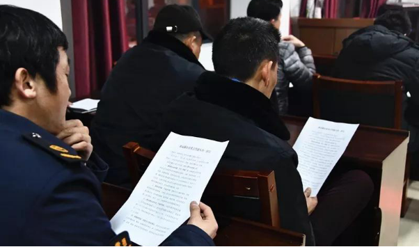 圖為公交駕駛員們正在認(rèn)真閱讀《致運(yùn)輸企業(yè)重點(diǎn)駕駛?cè)说囊环庑拧?/span>
