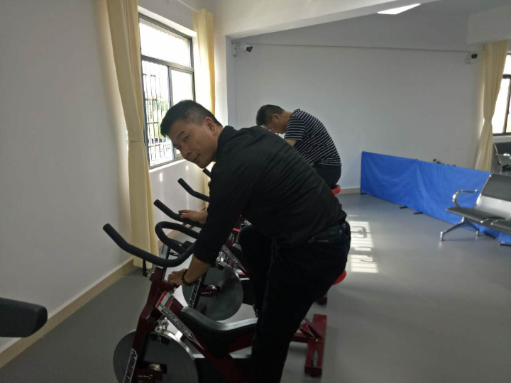 圖為公司員工正在動(dòng)感單車上健身鍛煉