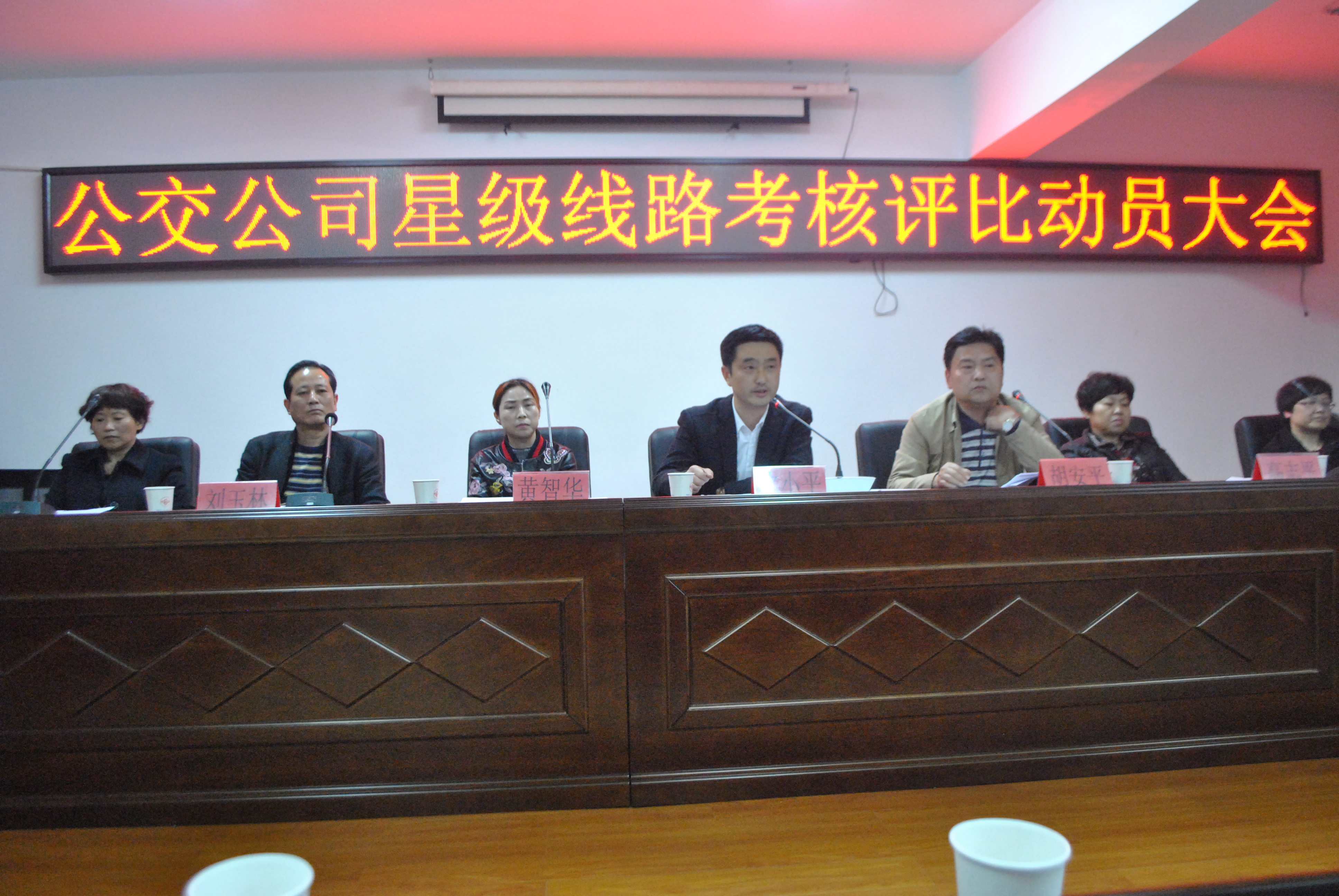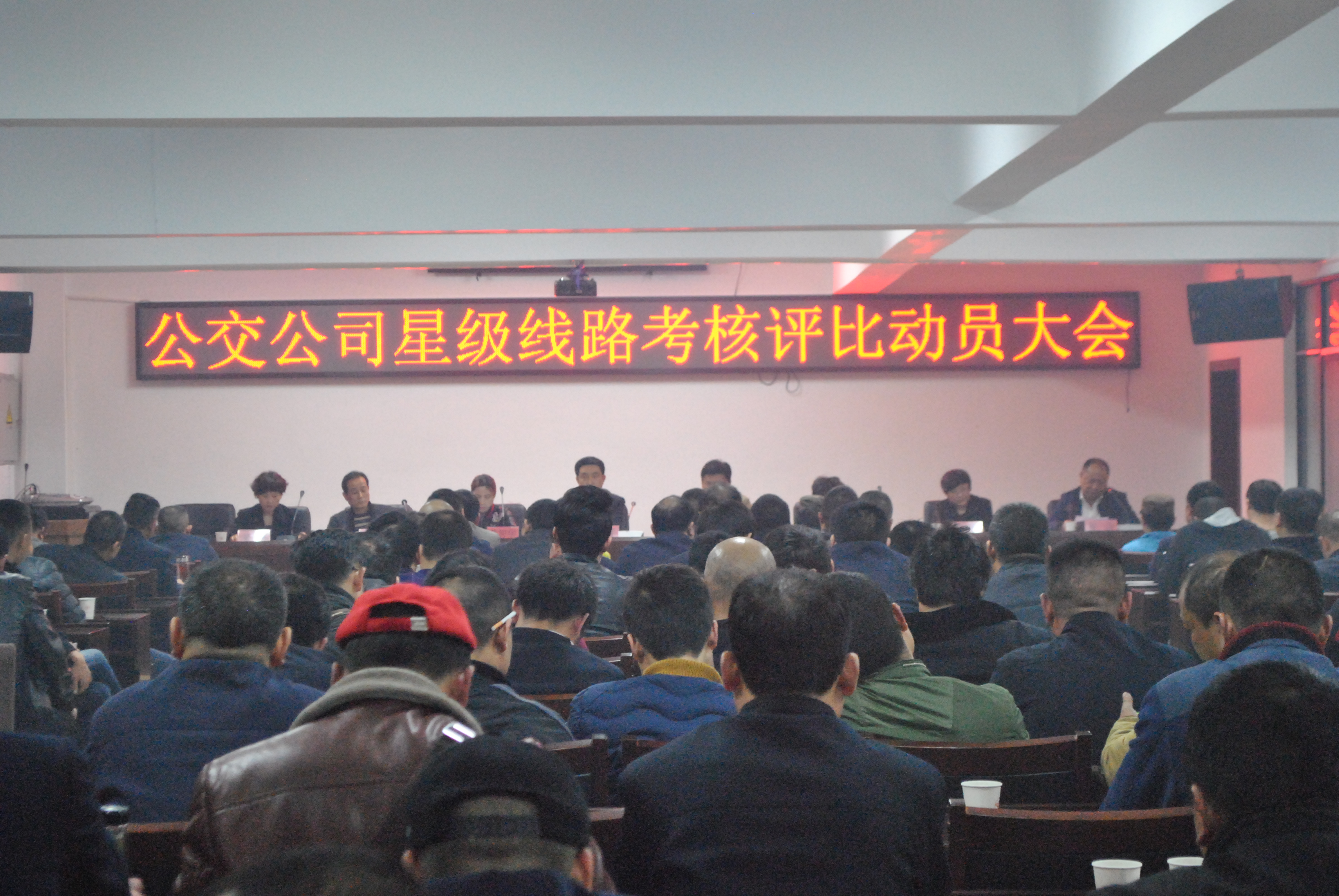 2017年3月29日晚,市公交公司星級線路考核評比動員大會在公司2樓大會議室召開。公司班子成員、各部門負責人、線路隊長及200多名駕駛員參加了本次動員大會。市客運管理處公交科科長黃智華應邀出席大會。