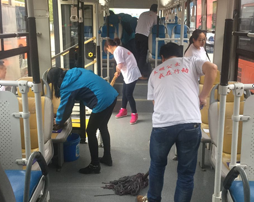 活動當(dāng)天,青年志愿者們以熱情飽滿的姿態(tài),分組行動。車輛清掃組的志愿者們對公司所屬公交車輛,從車外到車內(nèi),從座椅到車窗,從地面到扶手都一一打掃,忙得不可開交。站臺督導(dǎo)組的志愿者們手持文明禮讓標牌,在公交站臺積極引導(dǎo)乘客文明乘車,排隊禮讓,并耐心為乘客們宣傳、講解文明乘車與創(chuàng)建“公交都市”的目的和意義,進一步將青年志愿者服務(wù)活動推向深入。