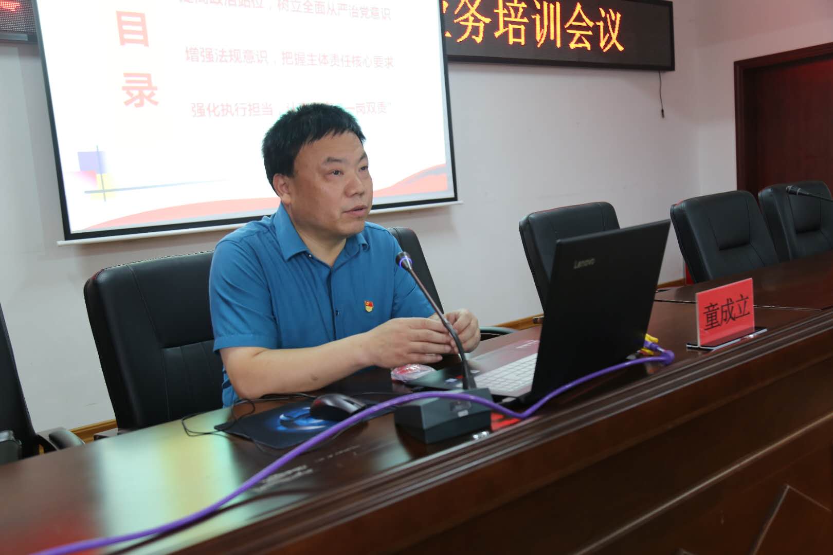 童成立同志以《認(rèn)真落實全面從嚴(yán)治黨主體責(zé)任 扎實推進(jìn)國有企業(yè)黨的建設(shè)工作》為題,主要講了三個方面的內(nèi)容:一是提高政治站位,樹立全面從嚴(yán)治黨意識;二是增強(qiáng)法規(guī)意識,把握主體責(zé)任核心要求;三是強(qiáng)化執(zhí)行擔(dān)當(dāng),認(rèn)真落實“一崗雙責(zé)”。會上他為大家詳細(xì)講解了《黨委(黨組)落實全面從嚴(yán)治黨主體責(zé)任規(guī)定》《中國共產(chǎn)黨國有企業(yè)基層組織工作條例(試行)》《中國共產(chǎn)黨支部工作條例》《中國共產(chǎn)黨黨員教育管理工作條例》等黨內(nèi)法律法規(guī),并就如何落實黨員領(lǐng)導(dǎo)干部“一崗雙責(zé)”、如何抓好支部五化建設(shè)進(jìn)行了重點講述,深刻闡述了黨的建設(shè)的使命任務(wù)、重點工作、關(guān)鍵舉措。