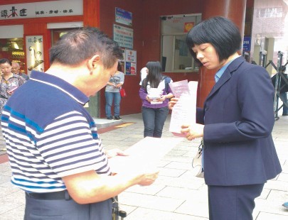 (圖為公司青年員工在育英小學(xué)向市民發(fā)放二期路改公交線路調(diào)整公告)