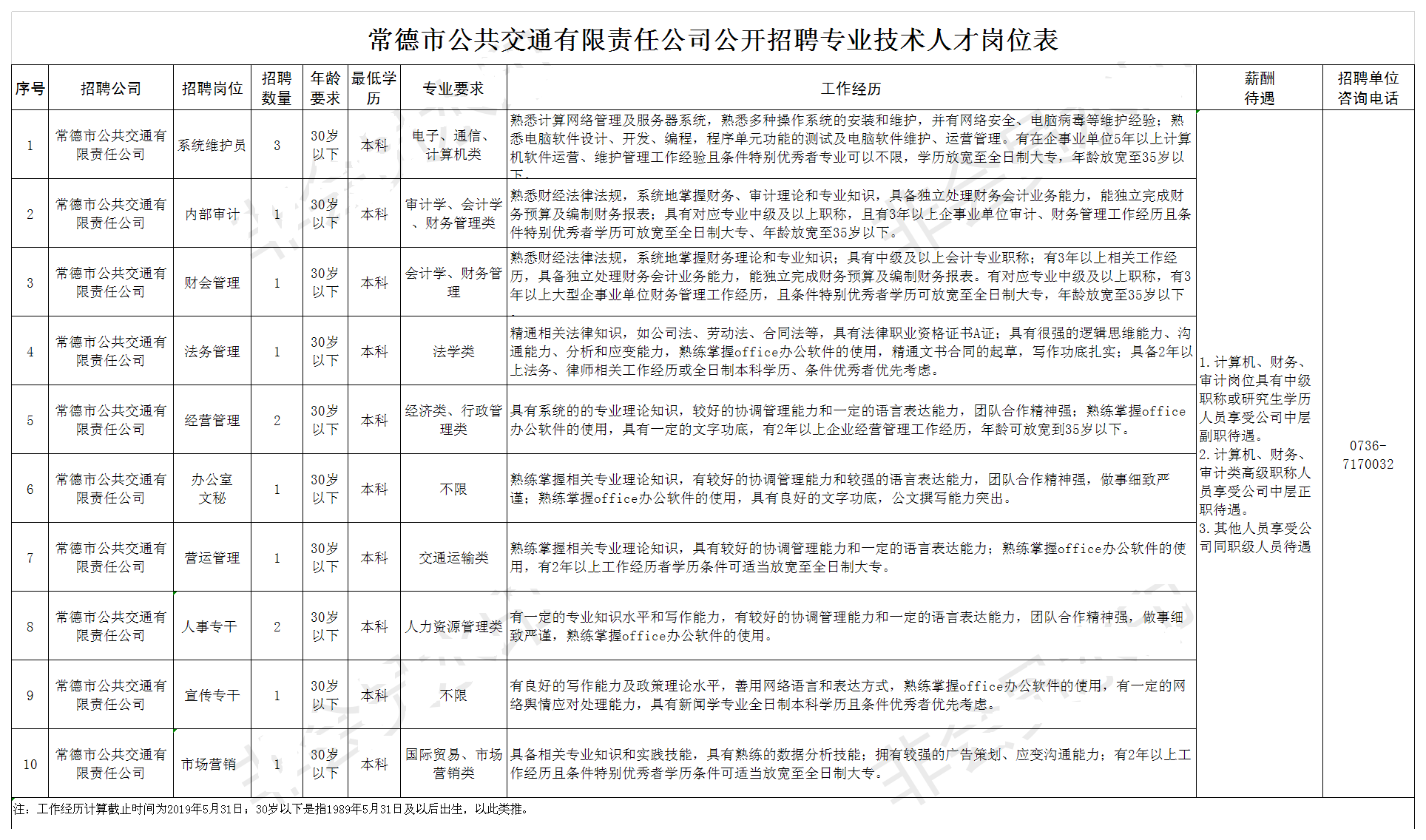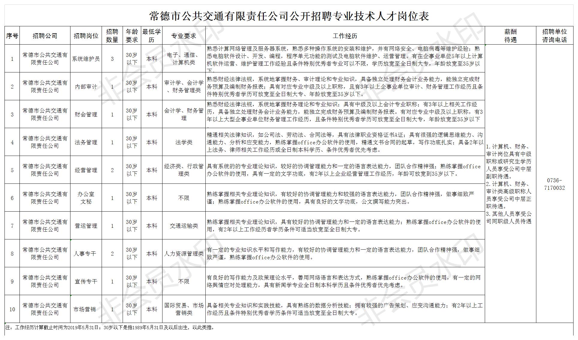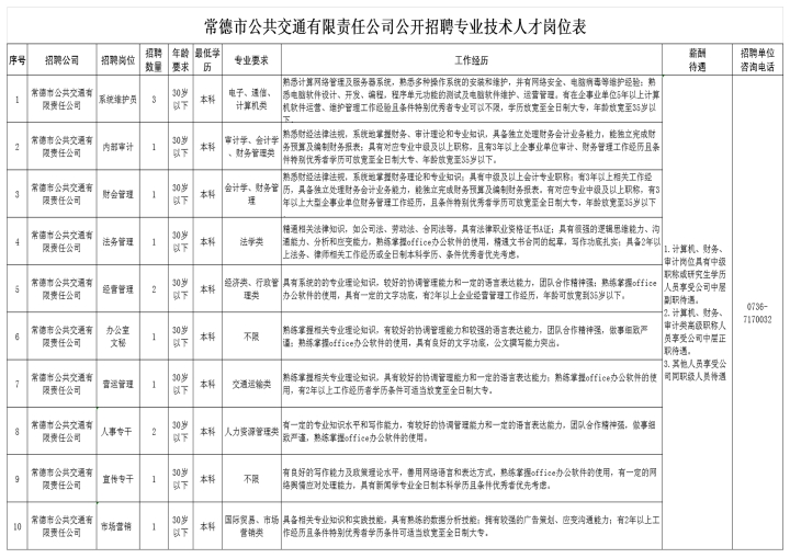 常德市公共交通有限責任公司招聘公告